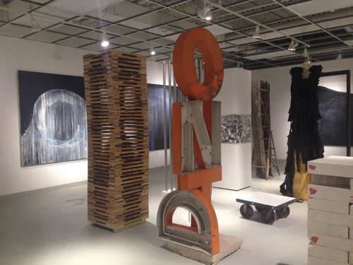 Welcome to our world of experiencing the (k)new – a web of lines structure but not programmed, forming a spatial construct of public and private, a gallery within; a textured space of solitude where the distinctions between past, present and future is a persistent illusion. The eye moves interrupted by image constructing the formal; a square, a collage of sequence vignettes of everyday, an operatic insight of thought. Central to every member of 7 is a facility to express ones thoughts through making. The “constructions” are isolated curiosities; but through an iterative process of re-imagining and conversation develop into a rich spatial collage of banal. The process grows in a naïve and organic manner but cultivated when applied to a given prompt and constrained though a determined rule-set; pulled directly from the surrounding context, history and in the frame of the post-industrial landscape, we utilize the ready to facilitate; A bricolage of experience, fabrication or place: creating a critical feedback look – the iterative nature of process facilitates a performative quality to each moment, not in a definitive conclusion but rather a line of argument in a continuing conversation; a palimpsest of investigation and expression. The construct, formed in time, formalized, the goat embraced by the tire; a dinosaur of process in a way of making, image as individual or collected in a Buñuel narrative. Are the six one or seven in 360 degrees of invisible cities; This is for the individual to conclude and decide not a conscription of thought. Step out of the web; for a moment, what may appear in scale of the fly suspended in line holding a familiar vision of place beyond reach. A moment of new perspective, a decent into the container refocuses a datum experienced beyond reach. Words. Moving back through waves of light washed over by the sirens towards the materiality of the Stelae – a quiet memorial to a seemingly insignificant place, object or person that we have known are worth considering and celebrating, in time; 24 figures in assemblage of magical realism, watched over by a vision beyond. A collected mass of threads created in alchemy for the curation of agency. The tangible becomes intangible and re-presents a view of the past in feeding the present; A ceaseless activity, a new presentation of the whole, grounding the foundation of the structure above. Passing through the threshold of light enveloped by the wales of industry, thought presents itself framed in a future space articulated by a colonnade to the west and to the east figures of eight and a half stand motionless.In the moment one slips into memory and present, through the light into a space of another; the sound is quitted by the silence and the images the other appears. An apparatus of thought and experience wrapped and tied in a model within.