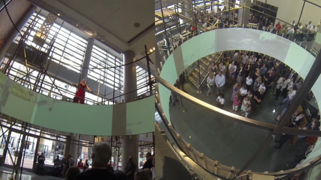 Registered in plaster, the city center hangs with great weight, while lifted and floating freely, evoking the spirit of Fellini, the scaffolding swings in motion, balanced as a mobile. Displayed as line, a vast number of moments emerge: the Cyclorama, the Shakespearean – Romeo and Juliet Tower, the Marionette, the Opera, the Cinema, the Divine Comedy, the Basilica. These archetypal projections become spatial experience.